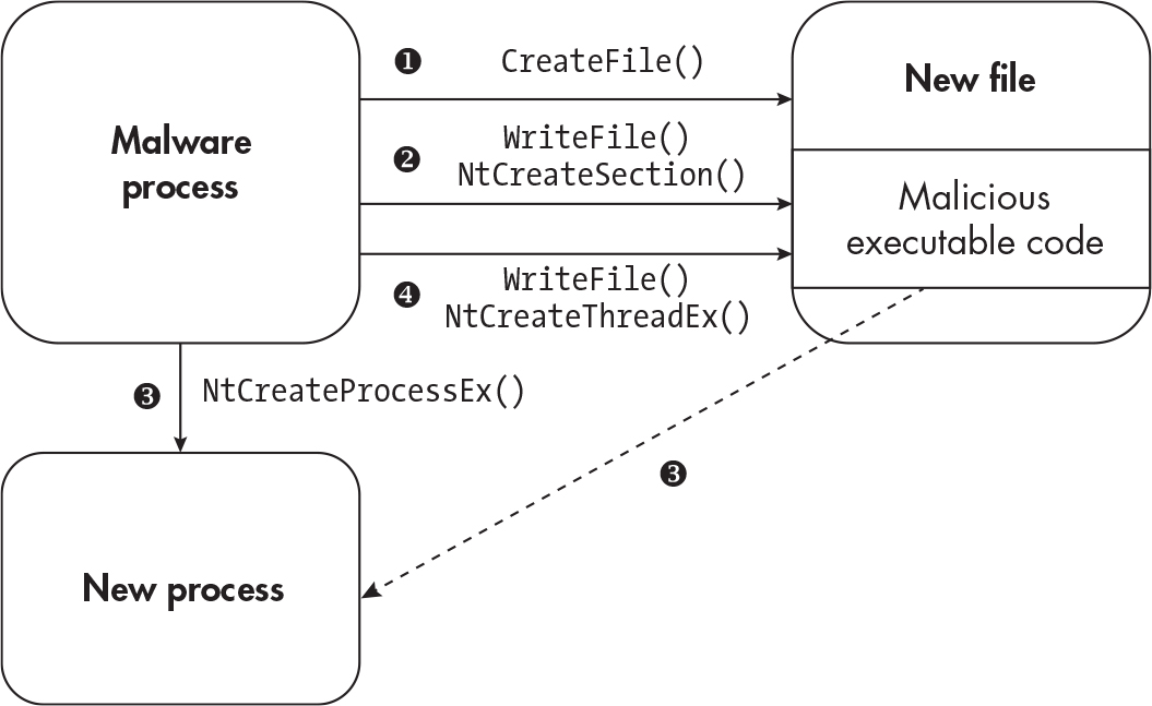 WriteFileand create a section withNtCreateSection - Create a process using the section object with