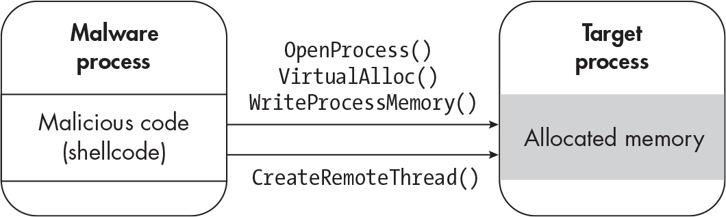 - Opening a new thread within a target process to run code.